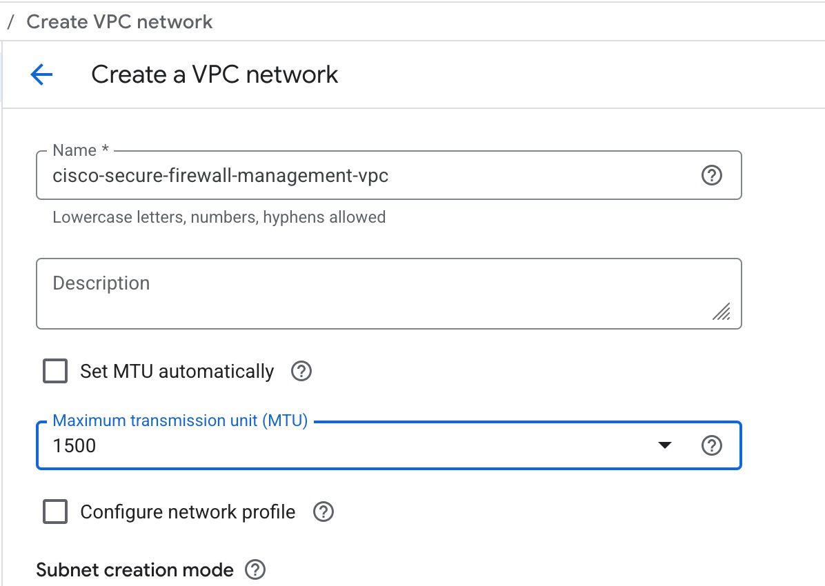 Select the Google virtual machine type and size to meet your Firewall Threat Defense Virtual needs. Currently, the Firewall Threat Defense Virtual supports both compute-optimized and general purpose machine types (standard, high-memory, and high-CPU machine types).