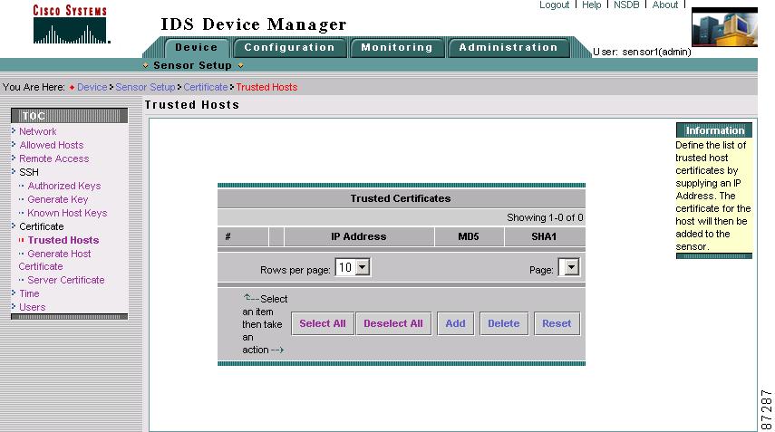 CautionThe sensor's IP address is included in the certificate. If you change the sensor's IP address, you must generate a new certificate.