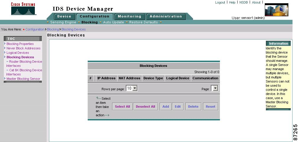 Only the master blocking sensor is configured to manage the network devices. The blocking forwarding sensor should not be configured to manage network devices.