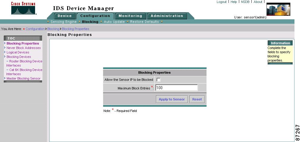 See Setting Up a Blocking Forwarding Sensors, for the procedure to configure the blocking forwarding sensor.