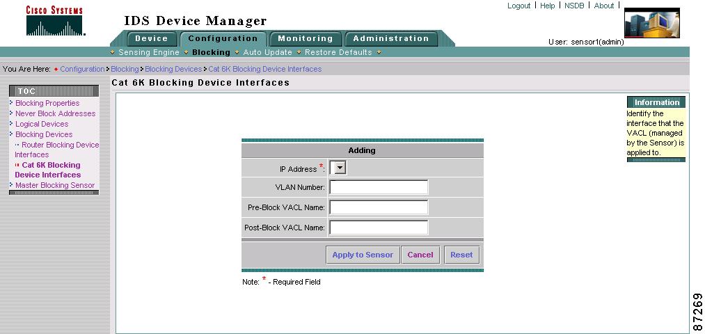 In the VLAN field, enter the VLAN number that the sensor will configure for blocking.