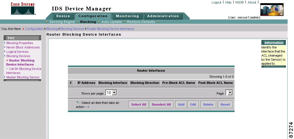 Select Configuration > Router Blocking Device Interfaces.