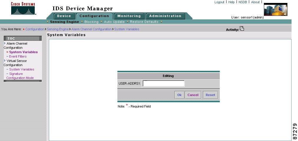 Select Configuration > Sensing Engine > Alarm Channel Configuration > System Variables.