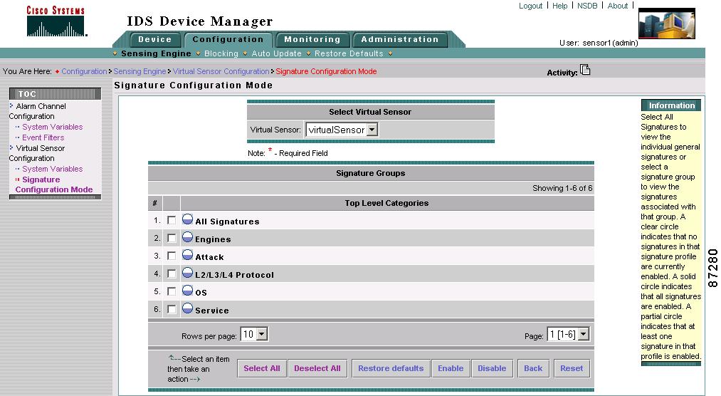 Working with Virtual Sensor Signature Configuration Mode