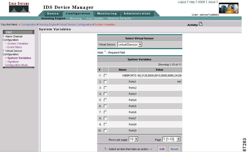 Select Configuration > Sensing Engine > Virtual Sensor Configuration > System Variables.