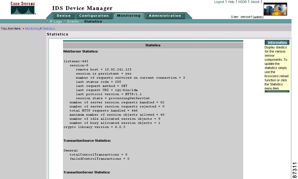 To update the statistics as they change, click Statistics again or click Reload in your browser.