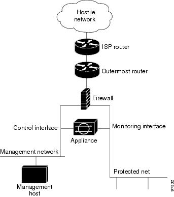 Essentially, the firewall implements policy filtering. The IDS appliance captures packets between the Cisco router and the firewall, and can dynamically update the ACLs of the Cisco router to deny unauthorized activity.