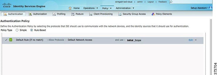 認証ポリシーを設定し、すべての認証の結果として Initial_Scope を選択します。