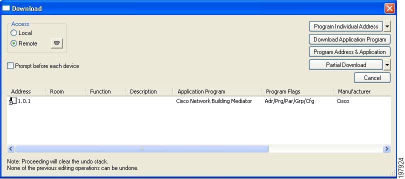From the list, choose the Mediator, and click Program Individual Address. The Download (Addr) dialog box appears displaying the progress of the operation. (See Figure 7-5.)