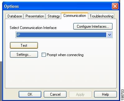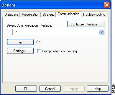 Figure 7-8 Options Dialog Box - Communication Tab - Test
