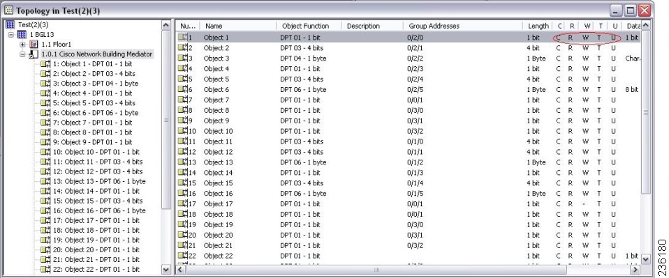 Ensure that the U flag for all KNX communication objects are enabled (as shown in Figure 7-9), so that the real-time values of the communication objects are updated to the Mediator from the KNX network after startup of the Mediator.