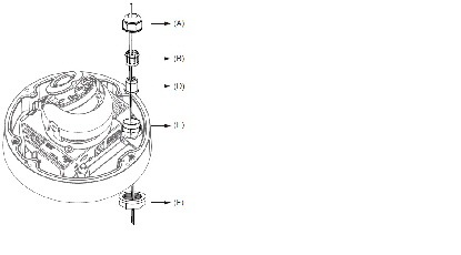 g. Secure the sealing nut (A) tightly and hex nut (F) from the bottom of the camera.