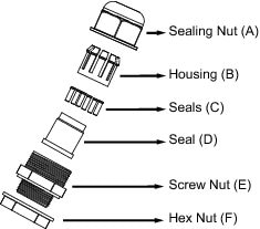 a. Disassemble the components of the waterproof connector into parts (A) ~ (F).