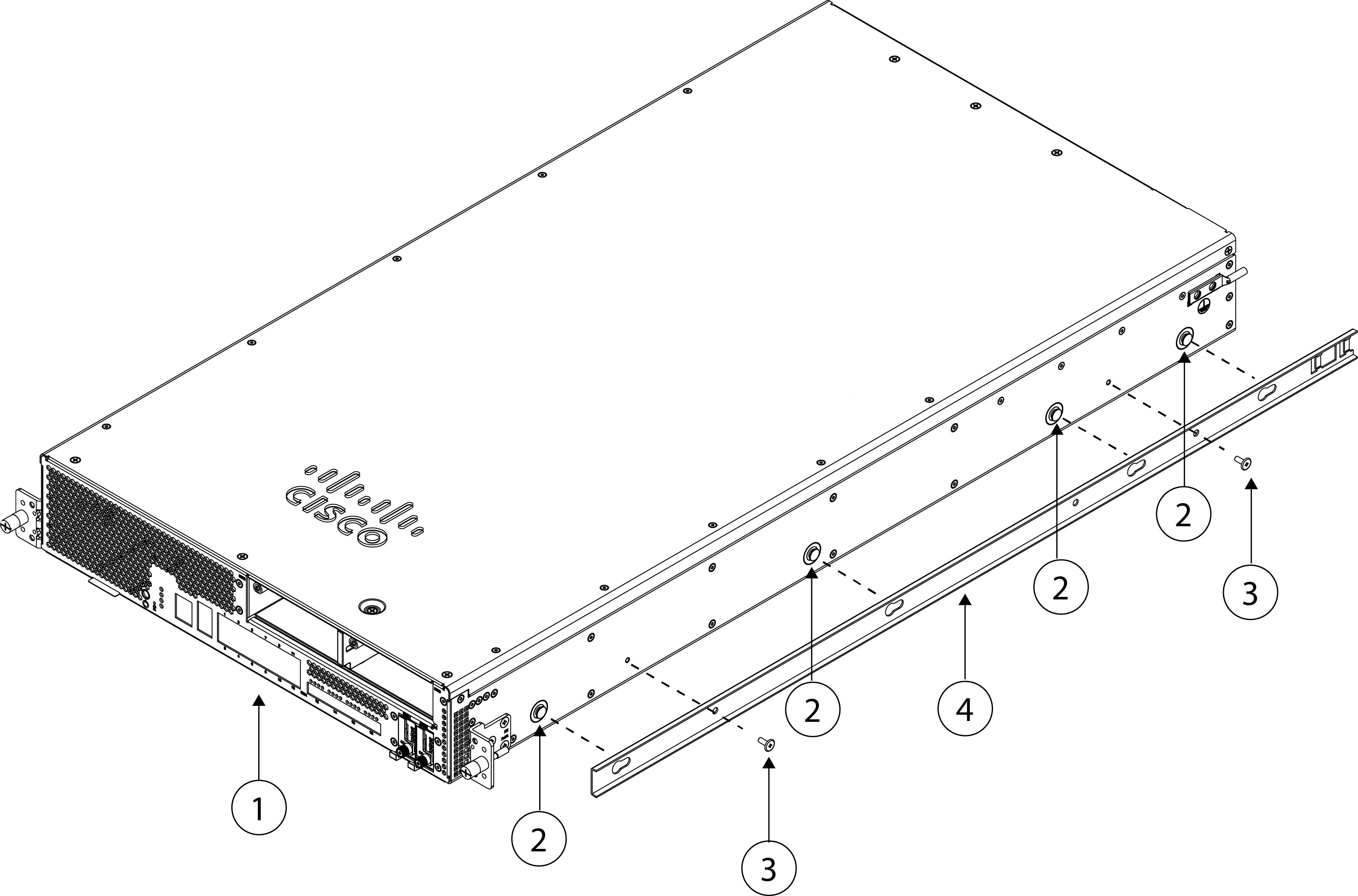 of the Secure Firewall 6100 series. You use the pegs on the chassis to secure the slide rail. See Product ID numbers for a list of the PIDs associated with racking the chassis. You can install the optional cable management bracket on all
