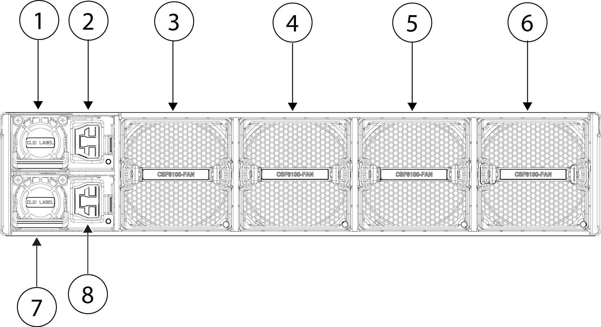 Four redundant dual-rotor fan modules; every module has 2 fans (hot-swappable) |