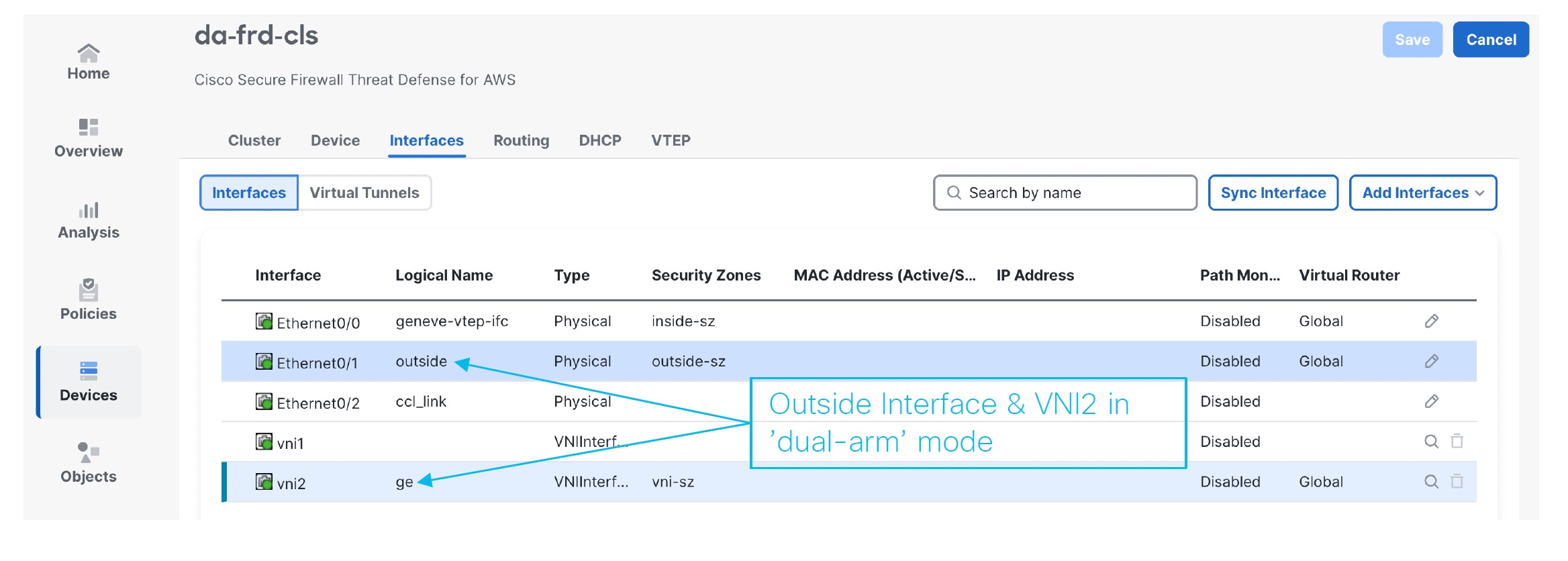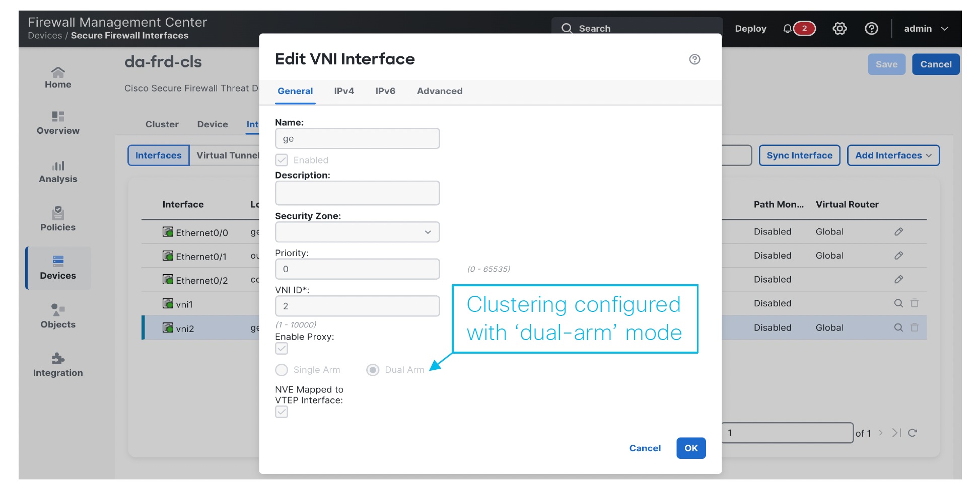 Unlike regular VXLAN for data interfaces, which allows a single VTEP peer, The Firewall Threat Defense Virtual clustering allows you to configure multiple peers.