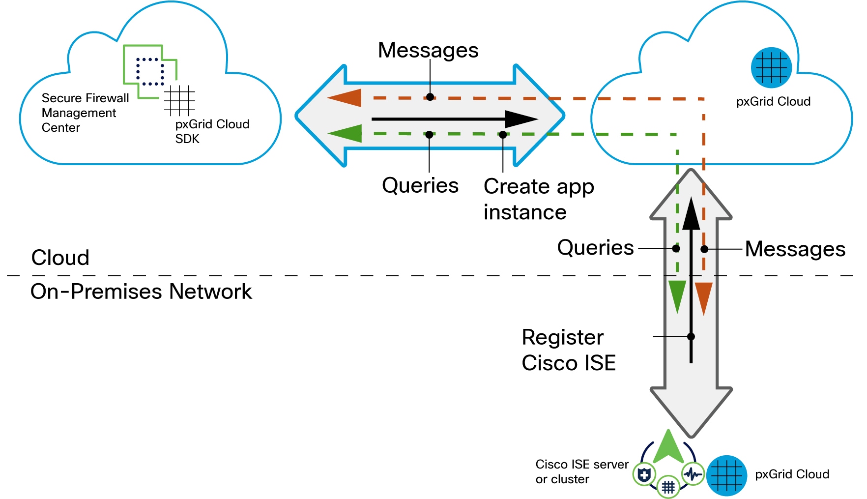 Your Secure Firewall Management Center uses the pxGrid Cloud SDK to programmatically retrieve user information from an on-premises Cisco ISE server or cluster so these users can be used in identity policies on the Secure Firewall Management Center.