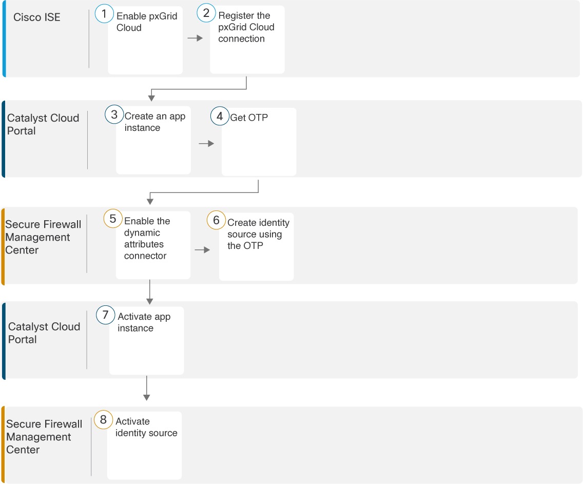 The Cisco Identity Services Engine (Cisco ISE) pxGrid Cloud identity source enables you to use subscription and user data from a server or cluster in Secure Firewall Management Center access control rules. Also, the identity source uses constantly changing dynamic objects from in access control policies in the Secure Firewall Management Center.