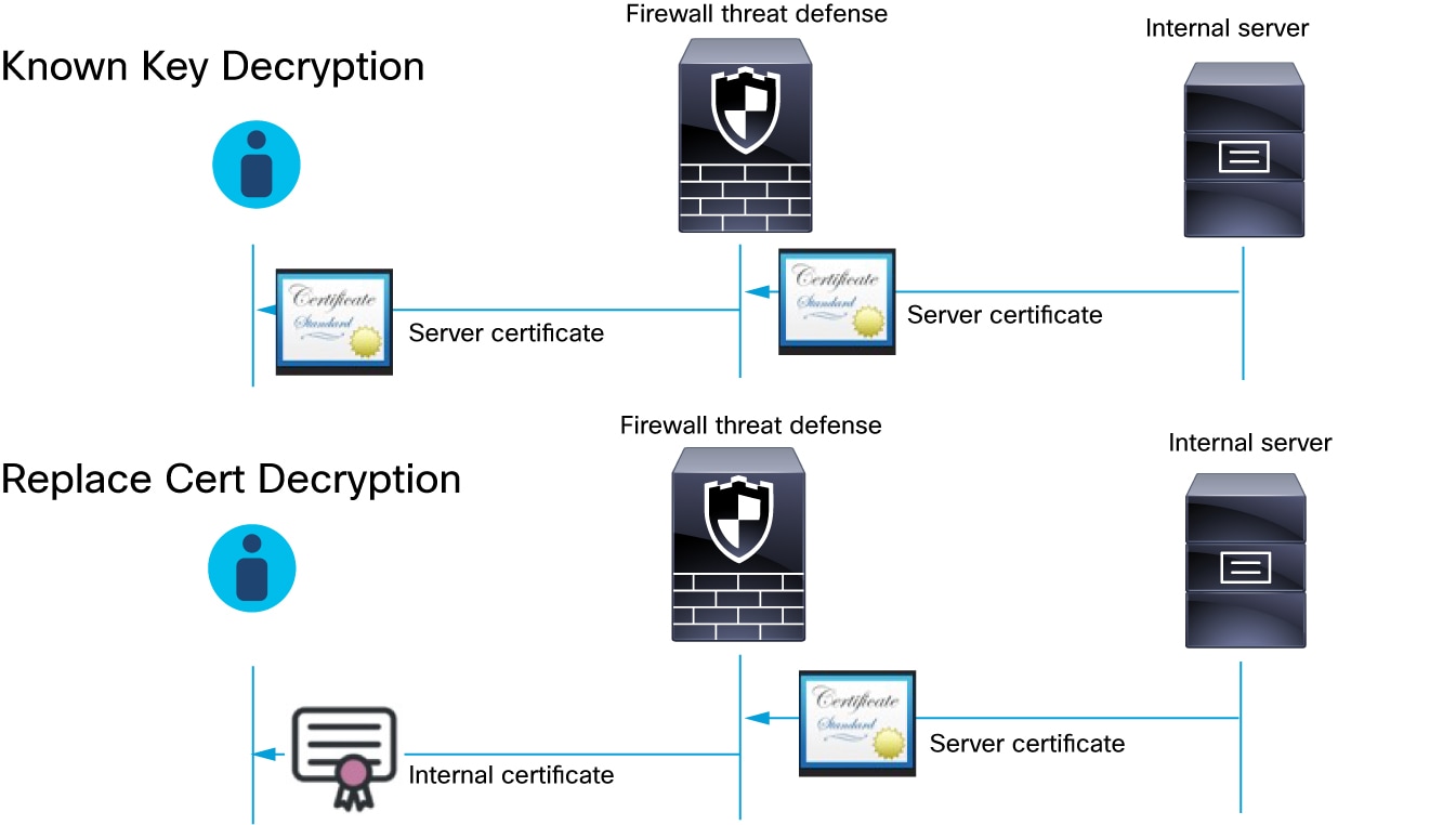 For more information about Decrypt - Known Key or Decrypt - Replace Cert, see TLS/SSL incoming traffic decryption guidelines.