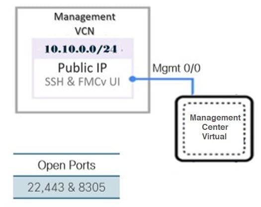 A sample network topology for deploying Cisco Secure Firewall Management Center Virtual on OCI.