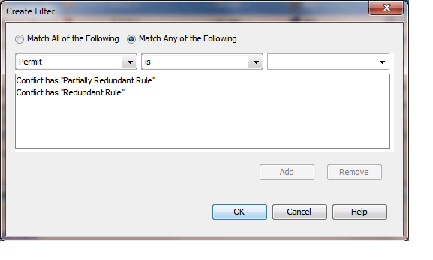 - Optimization does not address inherent problems in your access rules policy. It is typically better to address redundancies and conflicts proactively by using the automatic conflict detection tool (see Using Automatic Conflict Detection). You can also use the combine rules tool to optimize your rules in the access rules policy before you deploy them (see Combining Rules).
