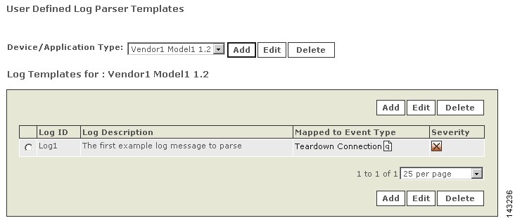 Figure 16-11 Log template for the device type `Vendor1 Model1 1.2'.