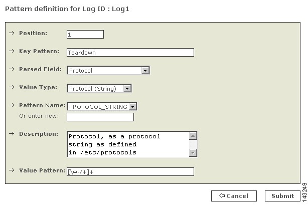 Figure 16-7 Define Pattern for a Log