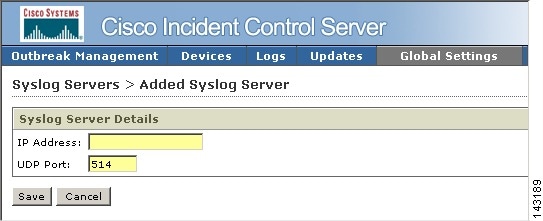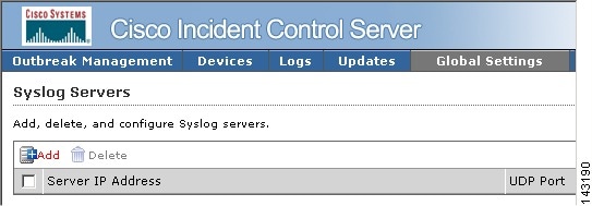Click Global Settings > Syslog Servers.