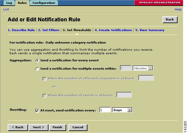 Under Add or Edit Notification Rule, click the 3. Set Thresholds link.