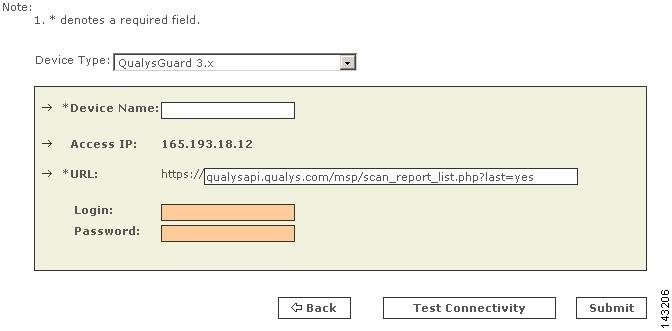 (Optional) To verify that the settings are correct and that the MARS Appliance can communicate with this Qualys device, click Test Connectivity.