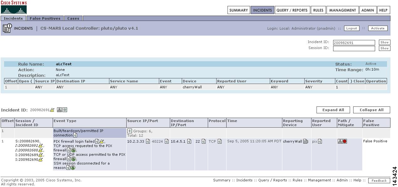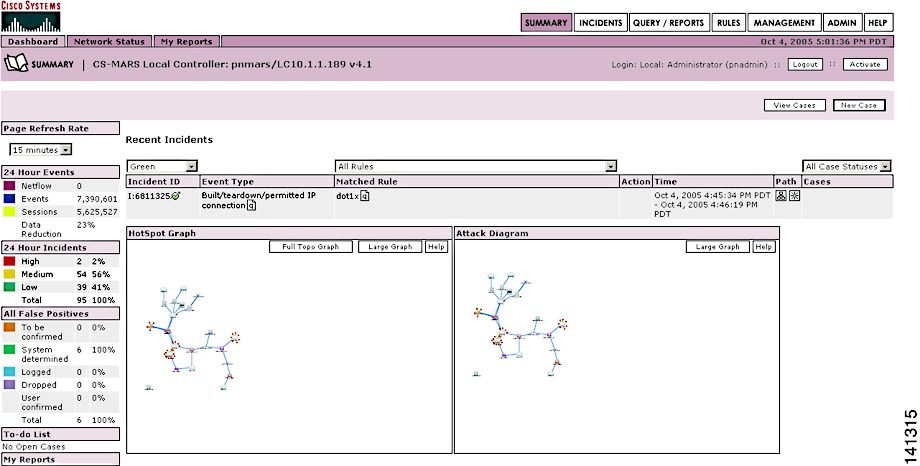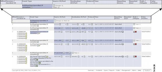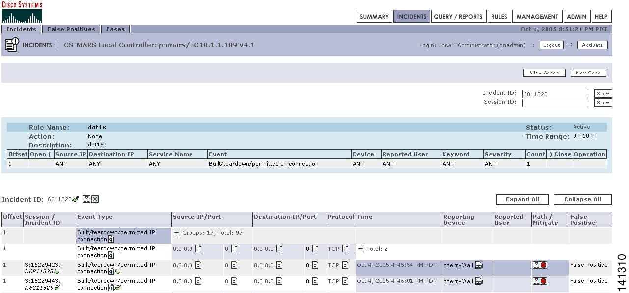 An incident is a chain of events that are correlated by a rule to signal an attack upon your network. MARS simplifies and expedites the detection, mitigation, reporting, and analysis of the incident. The Network Summary dashboard and the Incident pages help to detect recent incidents and show the rules and the events that compose them. Mitigation refers to the ability of the MARS to isolate the attacking and compromised network devices by identifying and configuring enforcing devices that act as choke points in the network. Queries and reports reveal the scope of a problem and gather data for analysis and regulatory compliance. All this information can be captured in a case report with Case Management and escalated to the relevant personnel.