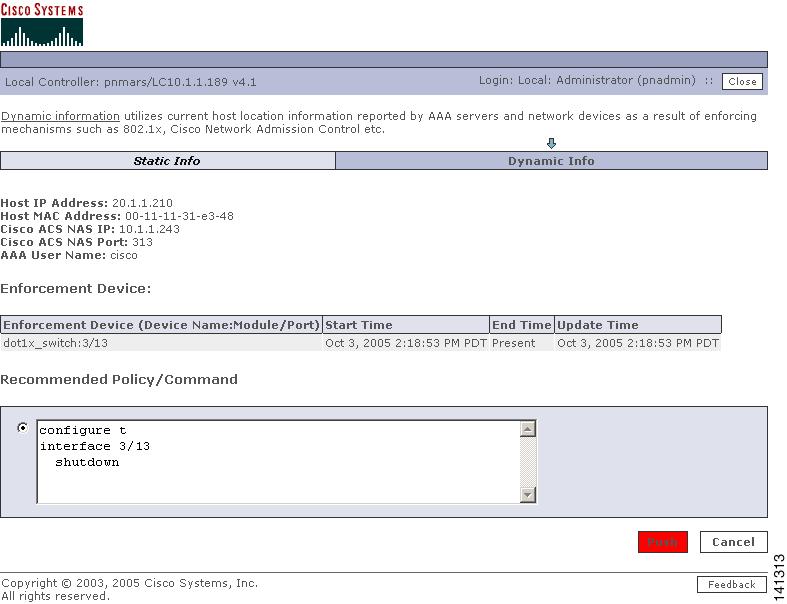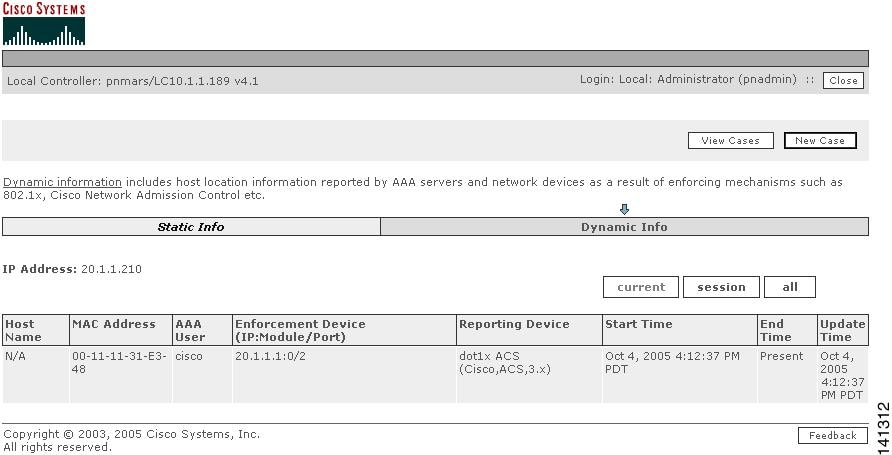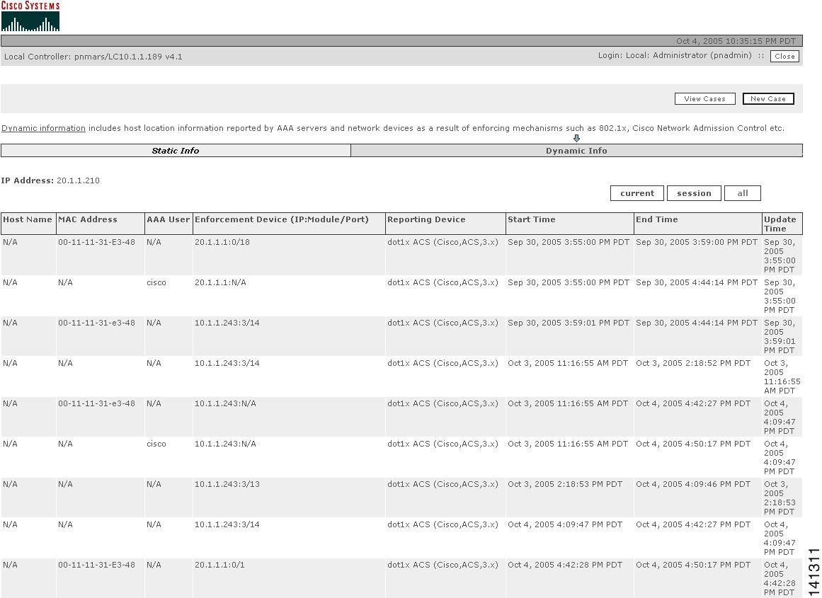 Dynamic information can be derived from 802.1X configurations, Cisco Security Agents, or from other security software suites. The current connection information is the most recent network information available for the selected IP address.Step 5