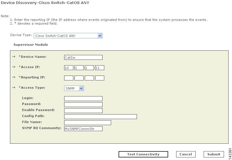 Add the Cisco Catalyst 5000 with SNMP as the Access Type.