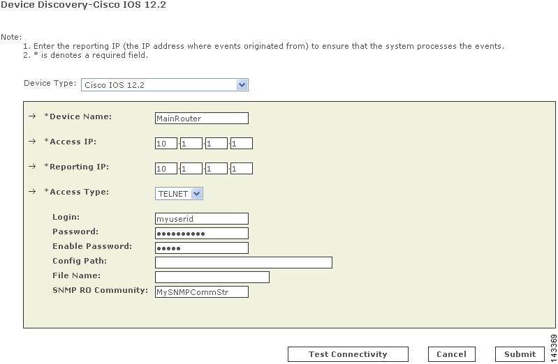 Add the Cisco 7500 Router with TELNET as the Access Type