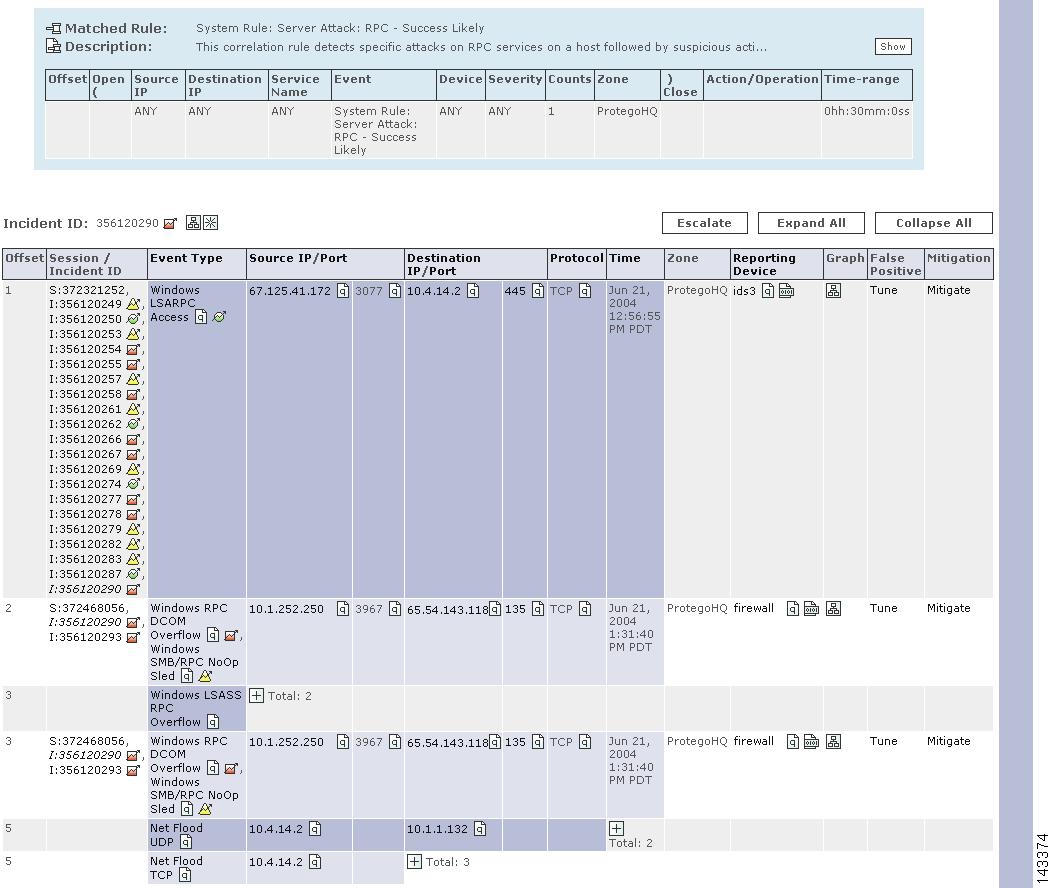 For example, if your network is probed for a DoS attack and then attacked, a rule fires when it sees the follow up attack. The incident displays the instances of this attack.