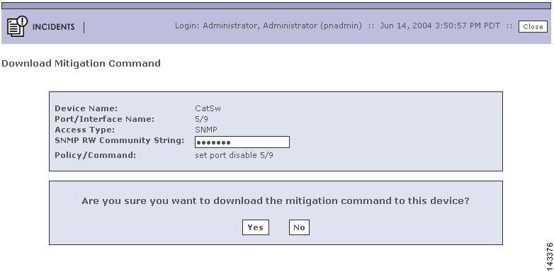 Click the Yes button to confirm the mitigation command and have it take effect.