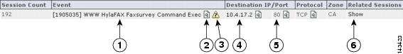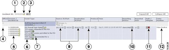 Each row of the Incident Details table represents either a session or the information common to a group of sessions. You can see all of the collapsed session information by clicking the plus signs to expand the group. You can expand or collapse all of the incident's information by clicking the Expand All or Collapse All buttons.