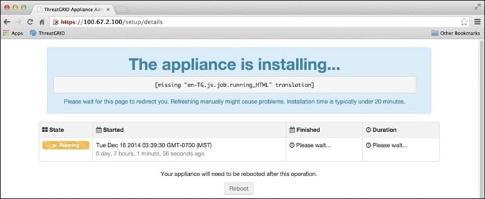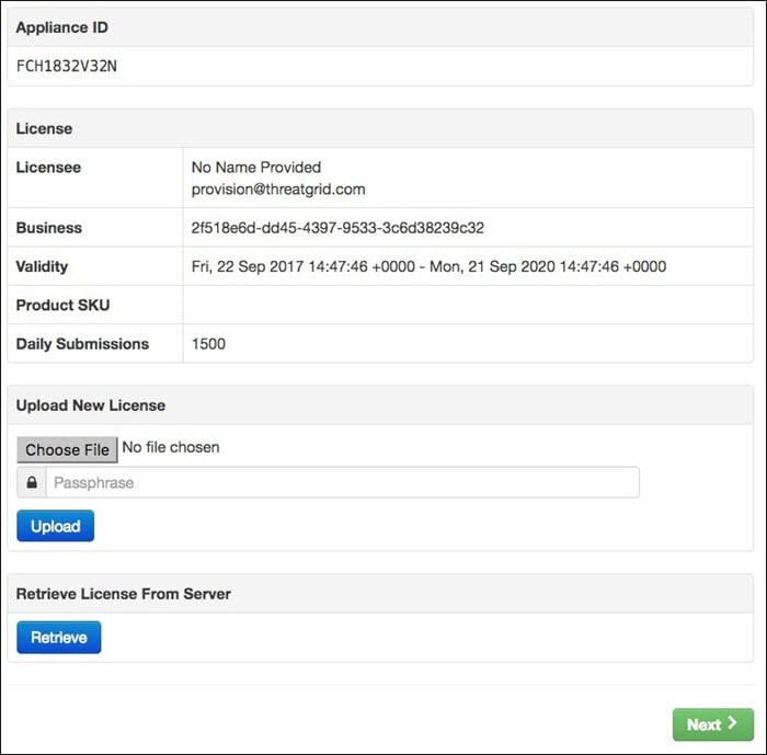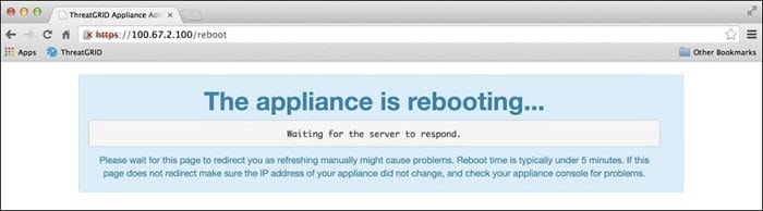 Not all configuration steps are completed using the configuration wizard. See the Cisco Threat Grid Appliance Administrator Guide for configuring settings not included in the wizard, such as SSL Certificates and Clustering. |