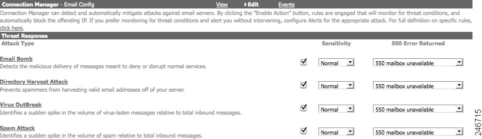 Ensure the Email Bomb, Directory Harvest Attack, Virous OutBreak, and Spam Attack check boxes are selected.
