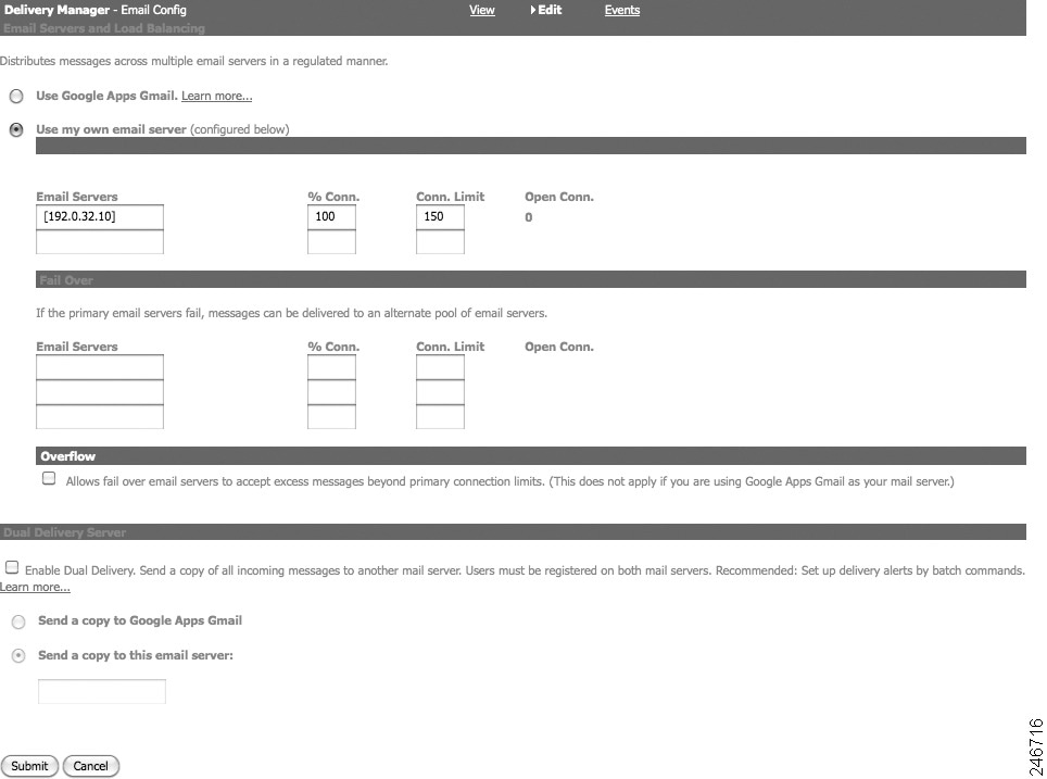 Input your primary email exchange server addresses in either DNS name or IP address and enter the percentage of load balancing.