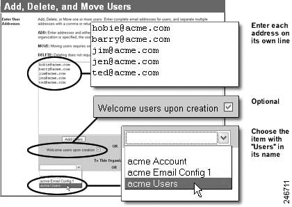 On the Add, Delete, and Move Users page, enter addresses of all users in your domain that should receive filtering.