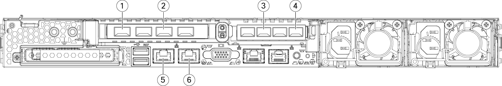The following figure shows which ports on the M5 server correspond to the "eno" ports in the figures above: