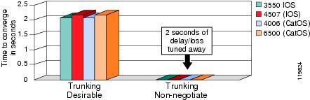 In the topology shown in Figure 57, the following convergence times can be observed: