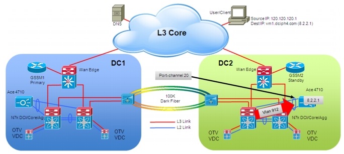 The deployment of OTV implies that the same LAN/IP subnet gets stretched between two (or more) data center locations. While removing the need to re-IP the VM once it is moved, a given IP address loses its linkage to a specific location. A mechanism is usually desired to optimize the traffic flows between any client and a specific data center service.