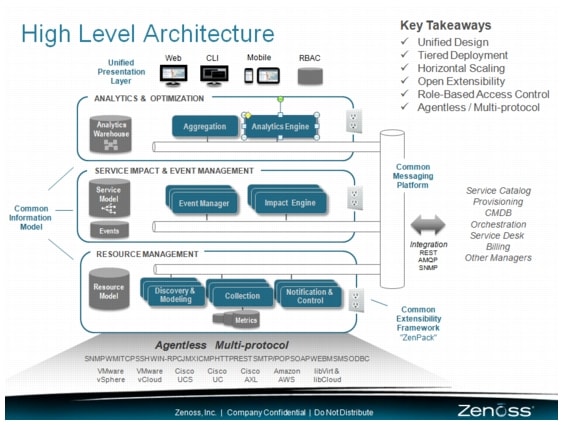 •Open Integration and Extensibility Framework—Rapidly extend, customize, and integrate with other management tools, leveraging open architecture and "ZenPack" plug-in framework. Leverage a global community of extension developers and partners.