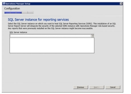 Since SQL 2012 resides on a standalone server separate from SCOM, the installation program might not be able to detect the SQL Server instance when attempted to install SQL Server Reporting Services (SSRS).