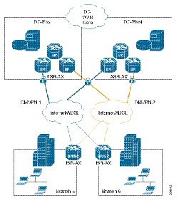 Transport Independent Design provides using Dynamic Multipoint VPN (DMVPN) as the GRE/IPsec VPN overlay. DMVPN is a Cisco software solution for building VPNs in an easy, dynamic and scalable manner with full authentication and encryption using IKEv2 and IPsec. Another part of the Transport Independent Design is the routing protocol that runs over the DMVPN tunnels and provides the base routing and forwarding for the data traffic that is flowing over IWAN. We recommend using either EIGRP or BGP (iBGP preferred). Transport Independent Design protects traffic between branch sites and between branch and hub sites (e.g traffic to the private data center).