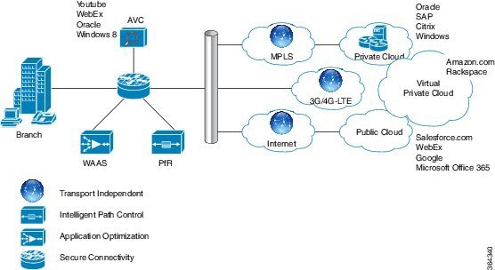 Cisco IWAN is a prescriptive solution for leveraging multiple transport providers, including low cost business grade broadband services as part of your WAN transport strategy. IWAN is a suite of components that brings all the WAN optimization, performance routing, and security levels of leased lines and expensive MPLS VPN services to the public Internet. IWAN makes it possible to get the performance, reliability and security benefits of private and virtual private network services while allowing the option of using more attractively priced service offerings and require simpler peering relationships with the transport provider. The same prescriptive design may be used with any transport provider; an important flexibility to have when multiple regional providers are needed.