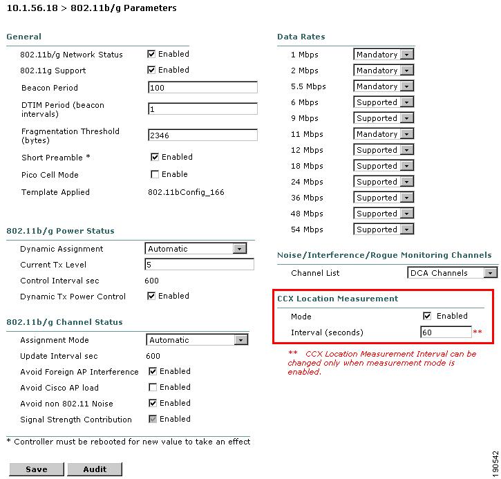 PollLOCP represents the LOCP polling interval and PollTAG specifies the poll interval at which the location appliance polls the controller for asset tag location information via SNMP. Both of these values are specified in seconds. The value for PollTAG is configured in WCS using Location Servers > Polling Parameters. For example, using an asset tag SNMP polling interval (PollTAG) of 120 seconds, the LOCP polling interval (PollLOCP) used by the location appliance is calculated to be 240 seconds.