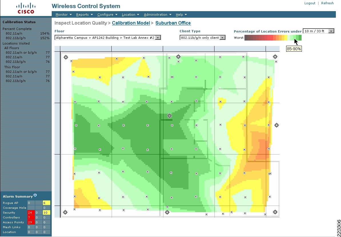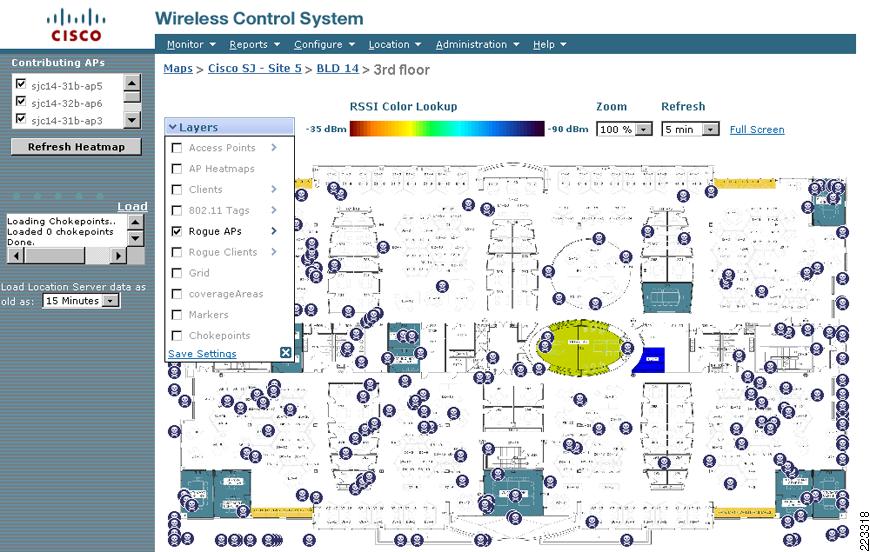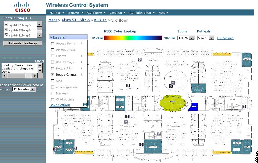 Location information is displayed to the end user using a location client application in conjunction with the Cisco Wireless Location Appliance. Typically, this role is fulfilled by the Cisco WCS, which, as will be further explained in subsequent sections of this document. As a location client, Cisco WCS is capable of displaying a wide multitude of information regarding the current and past location of clients, asset tags, rogue access points, and rogue clients.
